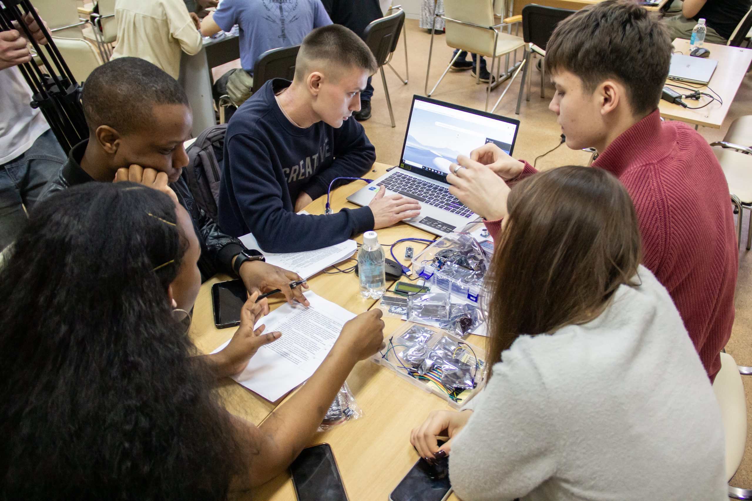 Турнир начался с погружения в мир электроники и робототехники. Руководитель FabLab «Электроника» – ведущий инженер кафедры «Радиоэлектроника и системы связи» ВШЭКН Николай Гудаев рассказал студентам об истории, ключевых тенденциях и возможностях современной электроники и микропроцессорной техники.